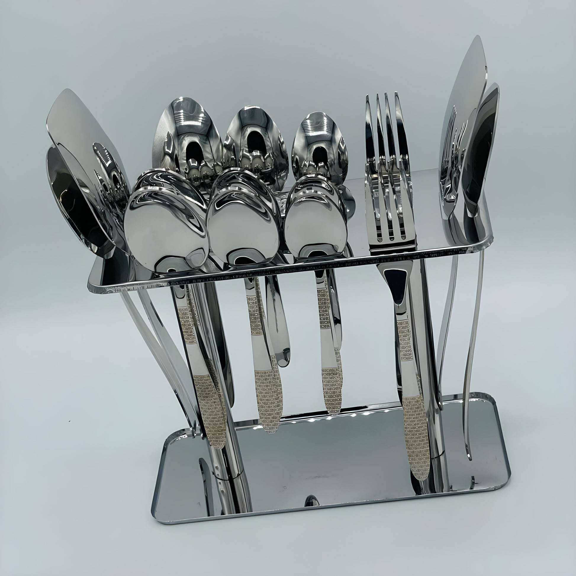 8 Persons set - Elegant Exclusive Gold Plated Laser Stainless Steel Cutlery Set