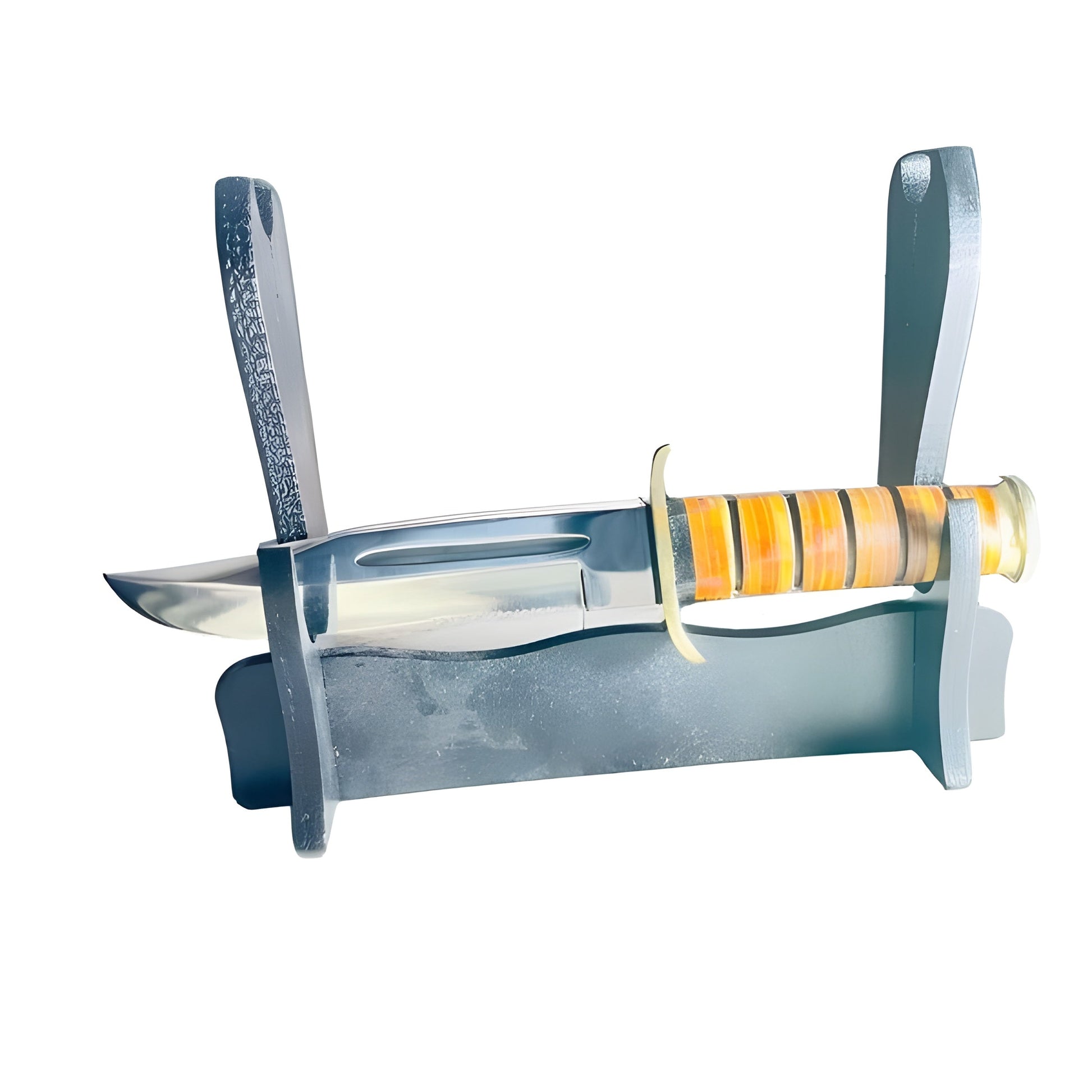 Elevate your outdoor gear with this Custom Handmade Bowie Knife, expertly crafted from D2 Tool Steel for exceptional strength, edge retention, and corrosion resistance. Perfect for hunting and survival, its robust design features an ergonomic handle for a secure grip and comes with a premium leather sheath for safe and stylish carry. Built for performance and durability, this knife is a reliable companion in the wild.