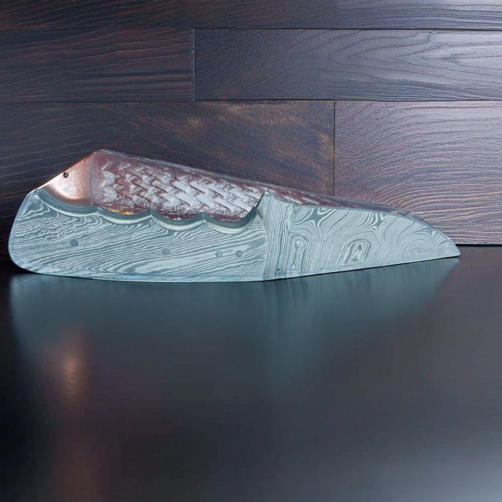 Artistic Damascus Steel Knife with Intricate Blade Design