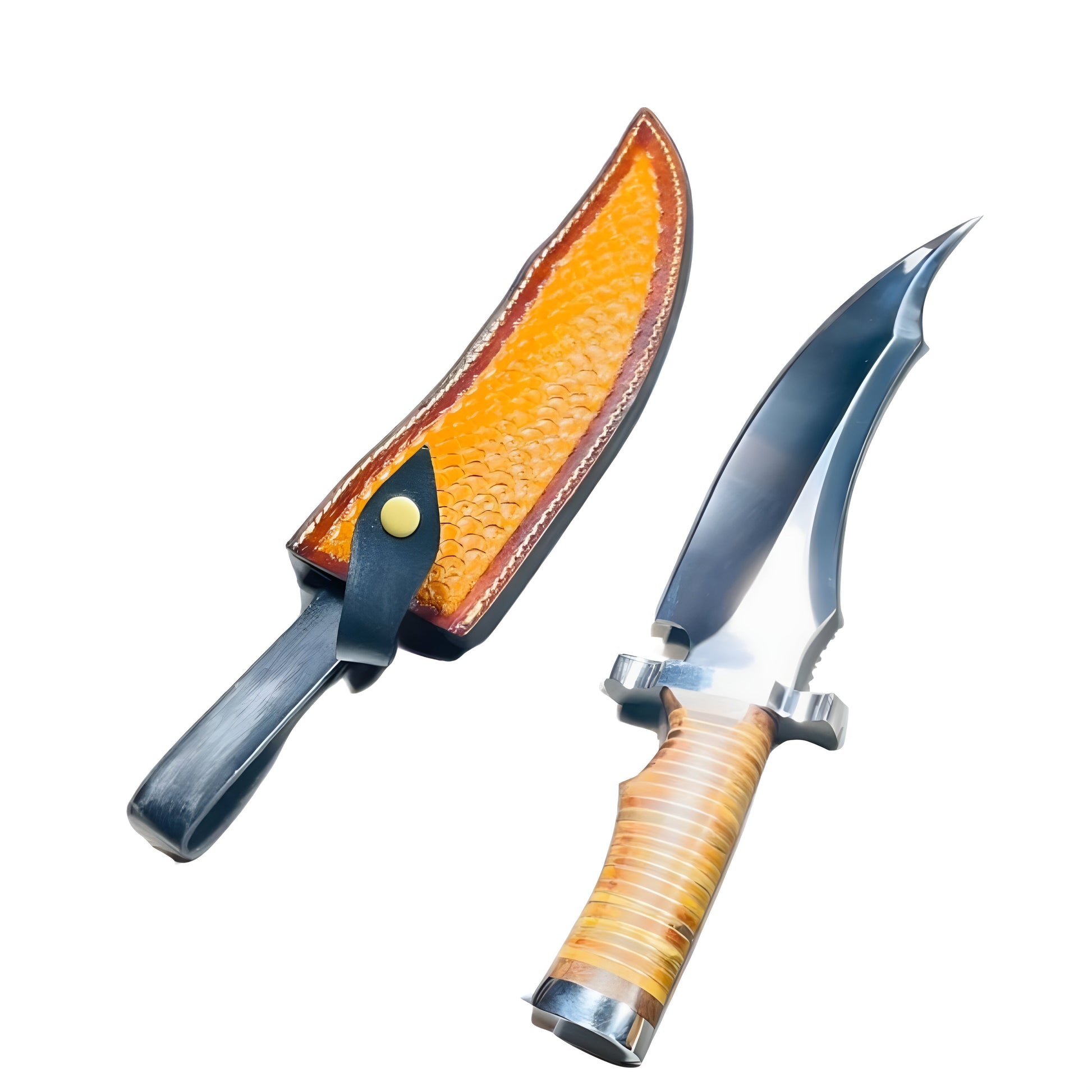 Elevate your outdoor gear with this Custom Handmade Bowie Knife, expertly crafted from D2 Tool Steel for exceptional strength, edge retention, and corrosion resistance. Perfect for hunting and survival, its robust design features an ergonomic handle for a secure grip and comes with a premium leather sheath for safe and stylish carry. Built for performance and durability, this knife is a reliable companion in the wild.