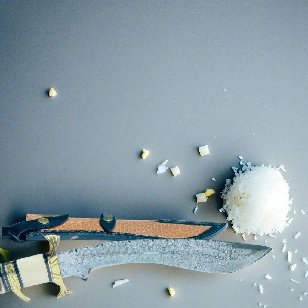 Crafted for serious outdoorsmen, this Custom Handmade Kukri Bowie Knife features a rugged Damascus steel blade known for its exceptional strength, sharpness, and distinctive pattern. The naturally textured stag horn handle offers a firm, ergonomic grip, making it ideal for heavy-duty hunting, camping, and survival tasks. With its unique blend of Kukri and Bowie design, this knife delivers powerful cutting performance and standout craftsmanship in one.