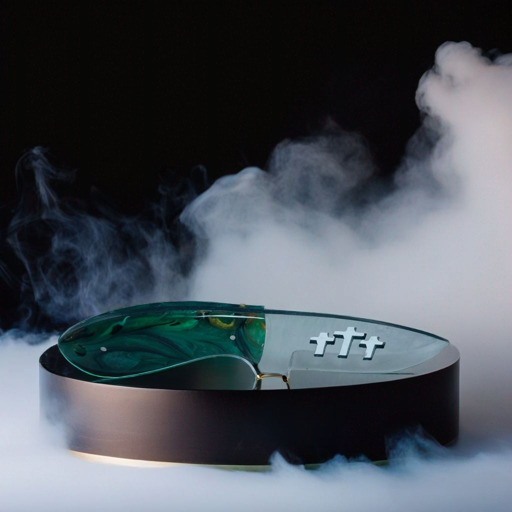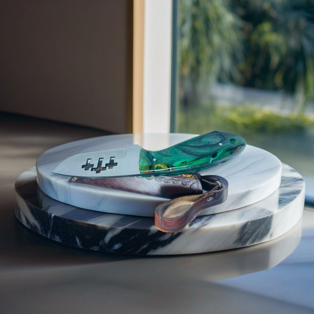 Emerald Veil: Custom Resin Handle Knife with Unique Cut-Out Blade