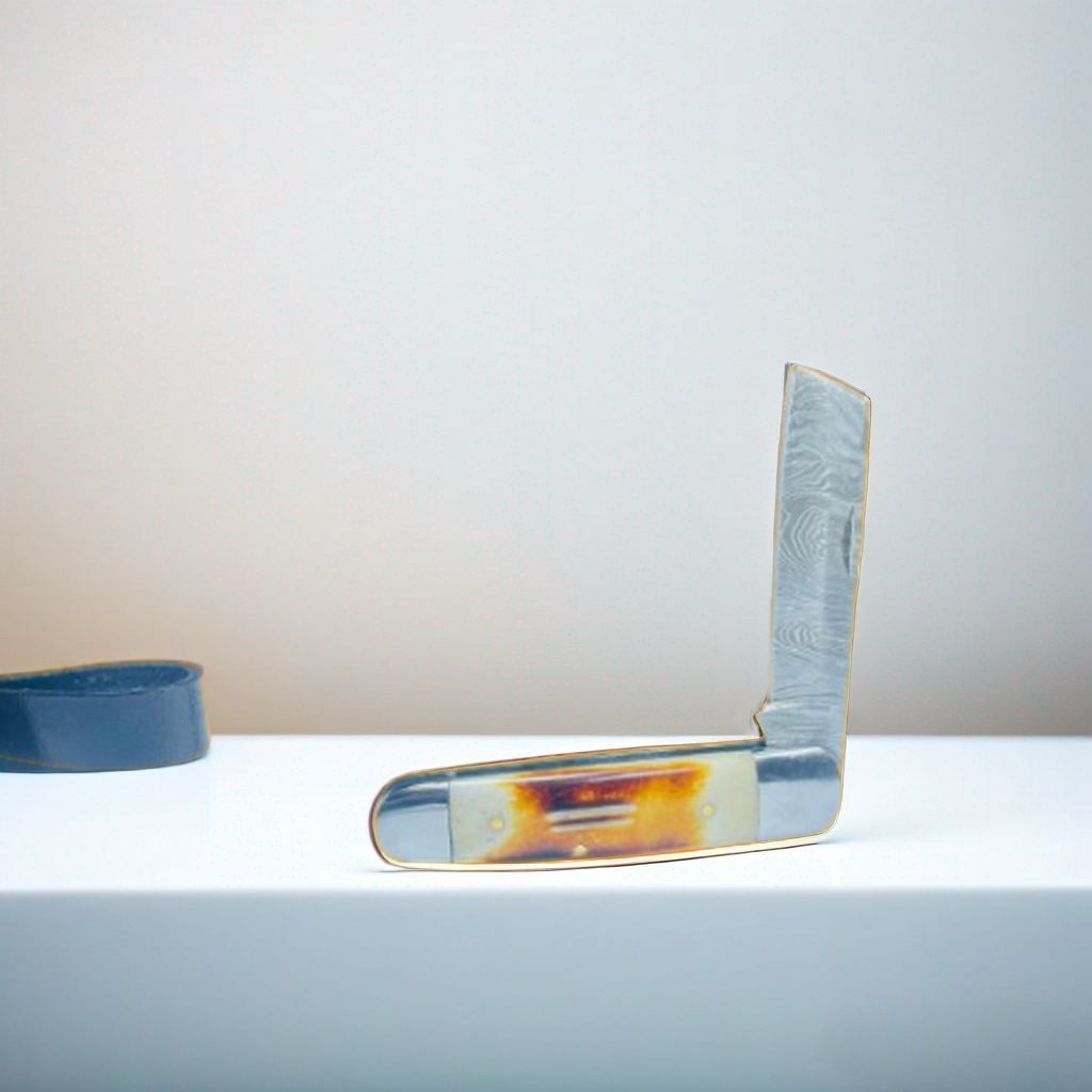 Experience the art of classic grooming with this Handmade Damascus Steel Straight Razor, crafted for those who value precision and elegance. The razor features a beautifully patterned Damascus steel blade, known for its unmatched sharpness, edge retention, and durability. Its bone handle is smooth, sturdy, and naturally textured, offering both a secure grip and a vintage aesthetic. Whether you're a professional barber or a traditional shaving enthusiast, this straight razor is a timeless tool for achieving a smooth, close shave with unmatched style.