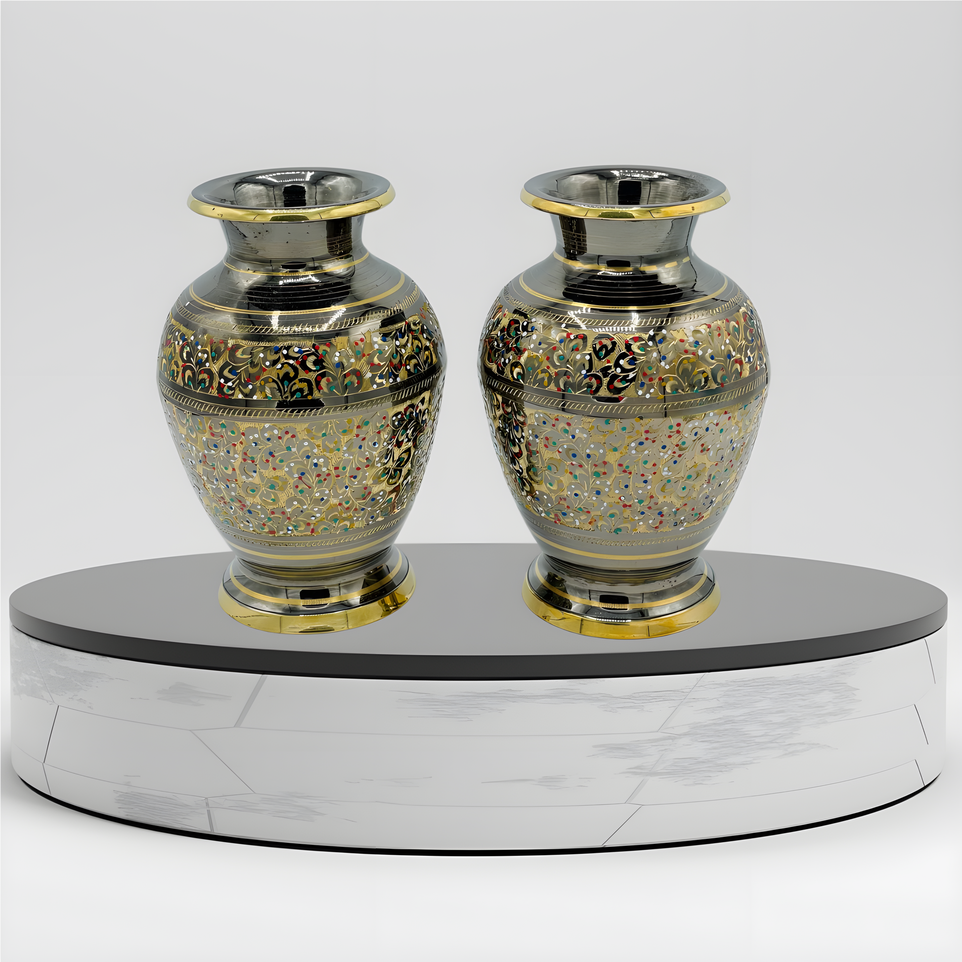 Vibrant Pair of Decorative Brass Vases